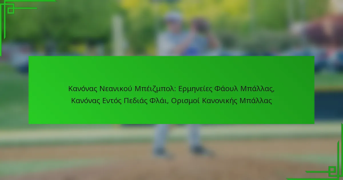 Το νεανικό μπέιζμπολ περιλαμβάνει συγκεκριμένους κανόνες σχετικά με τις φάουλ μπάλες, τον κανόνα της εσωτερικής πτήσης και τους ορισμούς των κανονικών μπάλων, οι οποίοι είναι ζωτικής σημασίας για την ακεραιότητα του παιχνιδιού. Μια φάουλ μπάλα συμβαίνει όταν μια χτυπημένη μπάλα προσγειώνεται εκτός της κανονικής περιοχής, ενώ ο κανόνας της εσωτερικής πτήσης προστατεύει τους παίκτες που τρέχουν στις βάσεις κατά τη διάρκεια ορισμένων pop-up. Επιπλέον, μια κανονική μπάλα είναι αυτή που προσγειώνεται στην κανονική περιοχή και παραμένει παικτική, καθιστώντας απαραίτητο για όλους τους συμμετέχοντες να κατανοήσουν αυτές τις ερμηνείες για μια ομαλή εμπειρία παιχνιδιού.