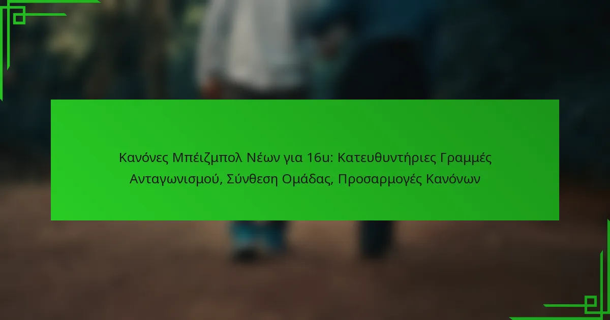 Κανόνες Μπέιζμπολ Νέων για 16u: Κατευθυντήριες Γραμμές Ανταγωνισμού, Σύνθεση Ομάδας, Προσαρμογές Κανόνων